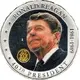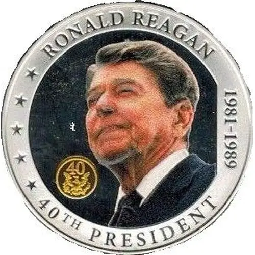 | Obverse description | Colored image of Ronald Reagan on mirror background with lettering around edge |