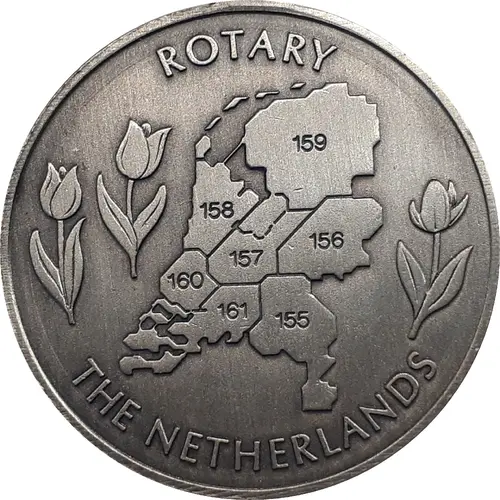 | Obverse description | A map of The Netherlands divided into Rotary Club sections. Two tulips to the left, one tulip to the right, text above and below. |