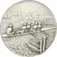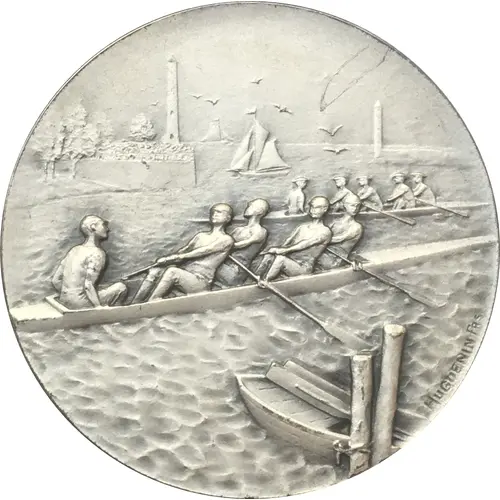 Descrizione del dritto Harbour view with rowing boat, lighthouse and sailboat in background.