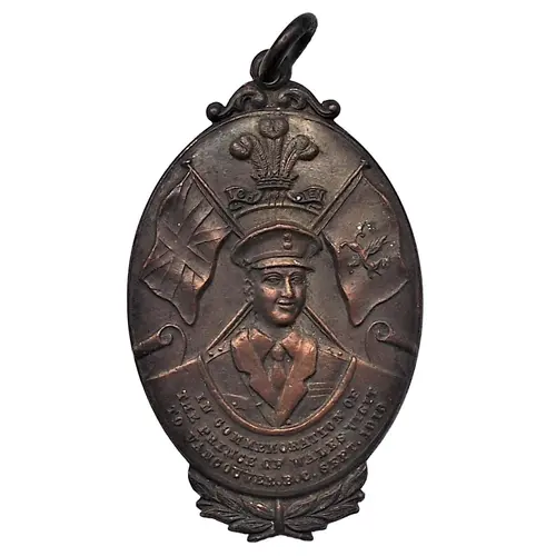 | Reverse lettering | ER DATHLU DYDD YMWELIAD `TYWYSOG GYMRU` A VANCOUVER, B.C. MEDI 22fed 1919 O. B. ALLAN (Translation: To celebrate visit day of `Prince of Wales` to Vancouver, B.C. September 22nd 1919) |