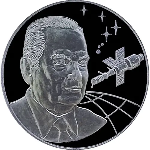 | Obverse description | Image of Vasily Pavlovich Mishin, a designer of rocket and space technology. One of the founders of Soviet practical cosmonautics. An associate of Sergei Korolev, who continued his work in the field of cosmonautics. V. P. Mishin led OKB-1 (now RSC Energia named after S. P. Korolev) from 1966 to 1974, after S.P.Korolev`s death. |