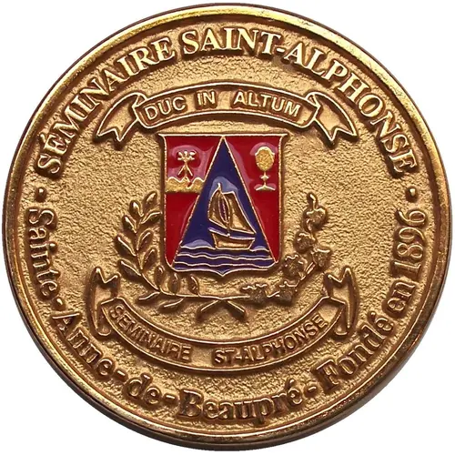 | Obverse lettering | SÉMINAIRE SAINT-ALPHONSE DUC IN ALTUM SEMINAIRE ST-ALPHONSE SAINTE-ANNE-DE-BEAUPRÉ - FONDÉ EN 1896 |