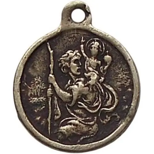 | توضیحات روی مدال | Saint Christopher carrying the infant Jesus on his shoulder. |