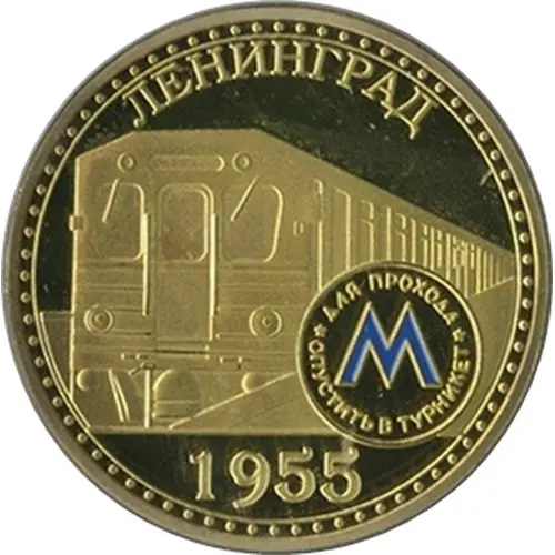 | Obverse lettering | ЛЕНИНГРАД ДЛЯ ПРОХОДА М ★ ОПУСТИТЬ В ТУРНИКЕТ ★ 1955 (Translation: Leningrad To pass - drop in a turnstile 1955) |