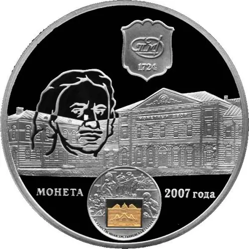 | Obverse description | Emblem of Goznak, image of Peter I, facade of the Mint. Bimetallic coin of Russia `150th Anniversary of the Foundation of the State Tretyakov Gallery` 2006 (4.66 g of gold and 155.5 g of silver) |