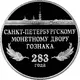 | Reverse lettering | 283 ГОДА САНКТ-ПЕТЕРБУРГСКОМУ МОНЕТНОМУ ДВОРУ ГОЗНАКА (Translation: 283 YEARS OF THE ST. PETERSBURG GOZNAK MINT) |