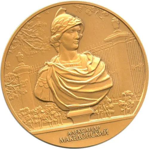 | Obverse description | Sculpture of Alexander of Macedon in the Summer Garden in Saint Petersburg. |