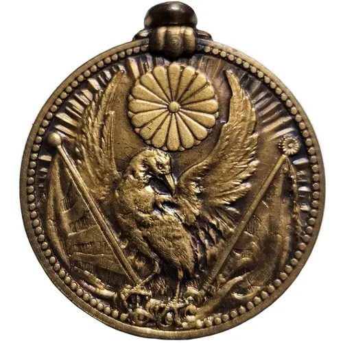 | Reverse description | The reverse depicts mountains, clouds, and waves, representing Northern China, Central China, and the Yellow Sea, symbolizing the geographical scope of the conflict. The inscription `支那事變` (China Incident) is prominently displayed in the center, denoting the official designation of the conflict by Japan. |