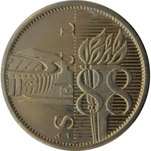 | Obverse description | Seoul Olympic Stadium left. Olympic flame right. |