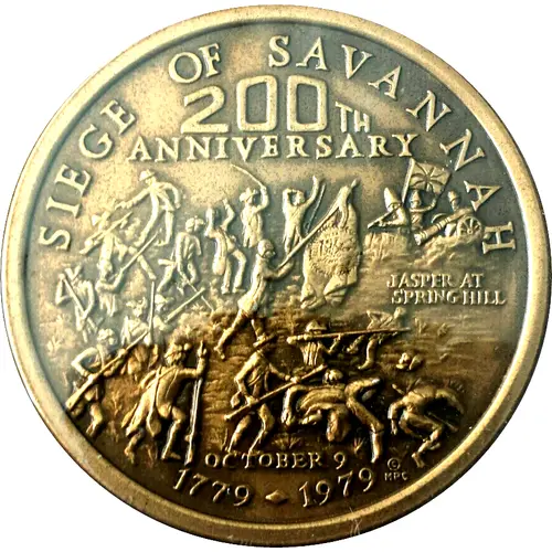 | Obverse lettering | SIEGE OF SAVANNAH 200TH ANNIVERSARY JASPER AT SPRING HILL OCTOBER 9 1779 - 1979 |