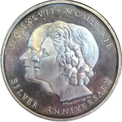 | Obverse lettering | MC MXLVII * MC MLXXII, SILVER ANNIVERSARY |