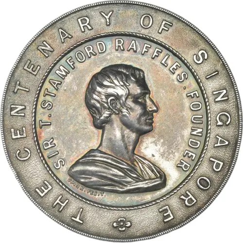 | Legenda del dritto | THE CENTENARY OF SINGAPORE SIR T.STAMFORD RAFFLES.FOUNDER |