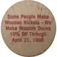 | Obverse lettering | Some People Make Wooden Nickels - We Make Wooden Decks 10% Off Through April 31, 1986 |