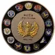 | Obverse description | Various colored emblems in outer ring. |