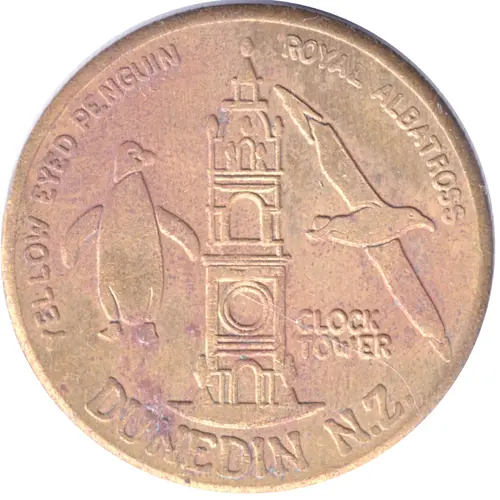 | Obverse lettering | YELLOW EYED PENGUIN ROYAL ALBATROSS CLOCK TOWER DUNEDIN N.Z. |
