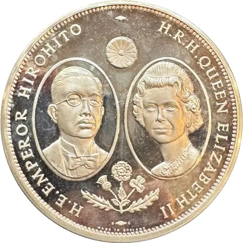 H. E. EMPEROR HIROHITO H. R. H. QUEEN ELIZABETH II D C MADE IN ENGLAND |