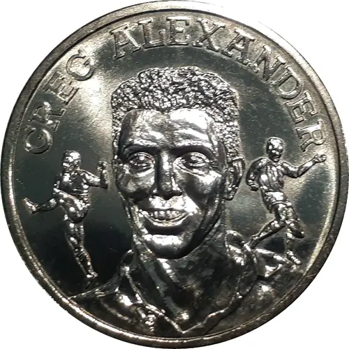 | Obverse description | Bust of Greg Alexander with action poses of Rugby League players either side. |