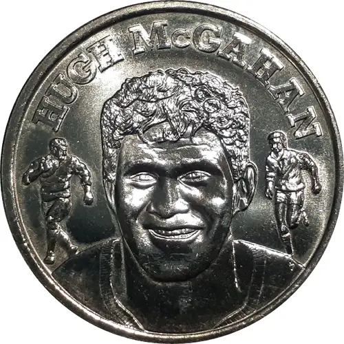 | Obverse description | Bust of Hugh McGahan with action poses of Rugby League players either side. |