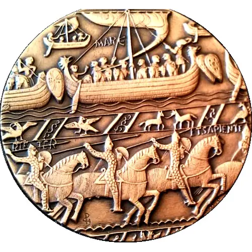 | Obverse description | Long boats with mounted norman knights. |