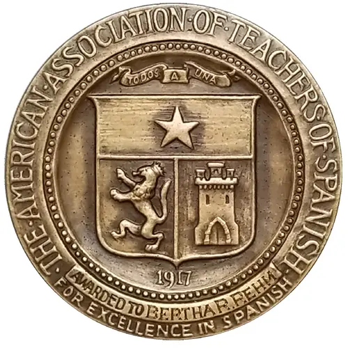 | 表面の銘文 | THE AMERICAN ASSOCIATION OF TEACHERS OF SPANISH TODAS A UNA 1917 AWARDED TO FOR EXCELLENCE IN SPANISH (Translation: All in one) |