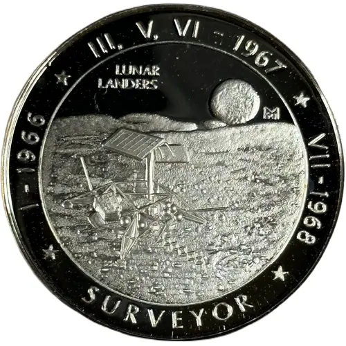 | Légende de l’avers | I - 1966 III, V, VI - 1967 VII - 1968 LUNAR LANDERS SJM SURVEYOR |