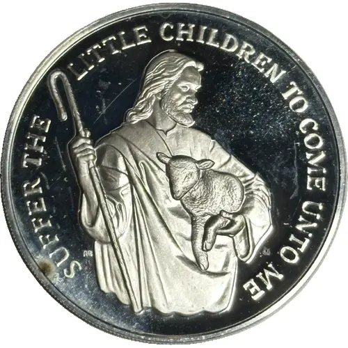 | Obverse lettering | SUFFER THE LITTLE CHILDREN TO COME UNTO ME RB |