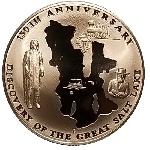 | Obverse lettering | 150TH ANNIVERSARY fm DISCOVERY OF THE GREAT SALT LAKE |