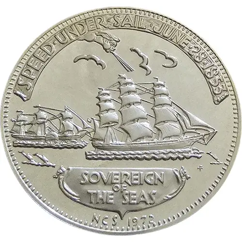 | Obverse lettering | SPEED ° UNDER ° SAIL ° JUNE 28TH 1853 SOVEREIGN OF THE SEAS NCS 1972 |
