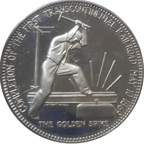 | Obverse lettering | COMPLETION OF THE FIRST TRANSCONTINENTAL RAILROAD MAY 10 1968 THE GOLDEN SPIKE |