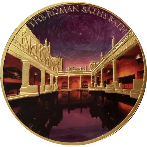 | Obverse description | The Roman Baths, with their sky and ground colors |