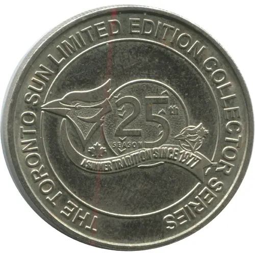 | Obverse lettering | THE TORONTO SUN LIMITED EDITION COLLECTOR SERIES 25TH SEASON A SUMMER TRADITION SINCE 1977 |