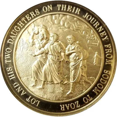 | Obverse lettering | LOT AND HIS TWO DAUGHTERS ON THEIR JOURNEY FROM SODOM TO ZOAR |