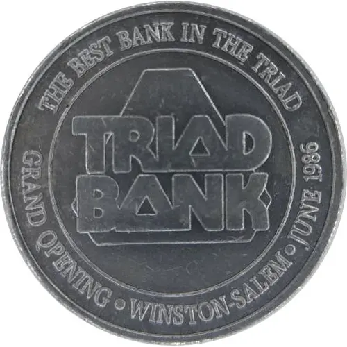 | Obverse lettering | THE BEST BANK IN THE TRIAD TRIAD BANK GRAND OPENING WINSTON-SALEM JUNE 1986 |