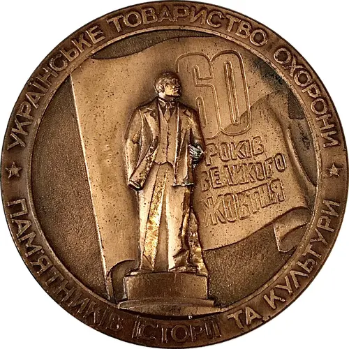 * УКРАЇНСЬКЕ ТОВАРИСТВО ОХОРОНИ * 60 РОКІВ ВЕЛИКОГО ЖОВТНЯ ПАМ'ЯТНИКIВ ІСТОРІЇ ТА КУЛЬТУРИ (Translation: Ukrainian Association to Protect Monuments in the History of Culture 60 years of Great October) |