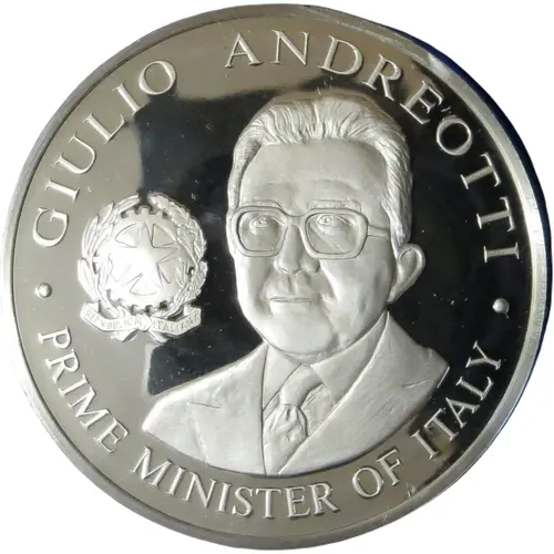 | Obverse lettering | GIULIO ANDREOTTI PRIME MINISTER OF ITALY |