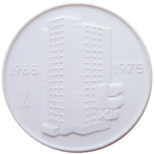 | Obverse description | Highrise building, date range to sides and Meissen logo at lower left. |