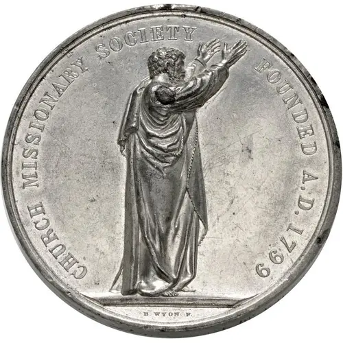 | Obverse lettering | CHURCH MISSIONARY SOCIETY FOUNDED A. D. 1799 |