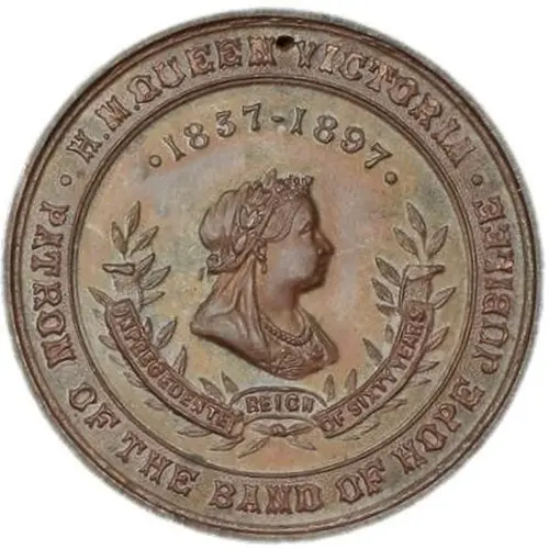 | Obverse lettering | H M QUEEN VICTORIA - PATRON OF THE BAND OF HOPE JUBILEE, 1837-1897 UNPRECEDENTED REIGH OF 60 YEARS |
