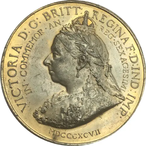| 表面の銘文 | VICTORIA D:G: BRITT: REGINA F:D:IND:IMP IN.COMMEMOR.AN. REG.SEX AFESIMI MDCCCXCVII |