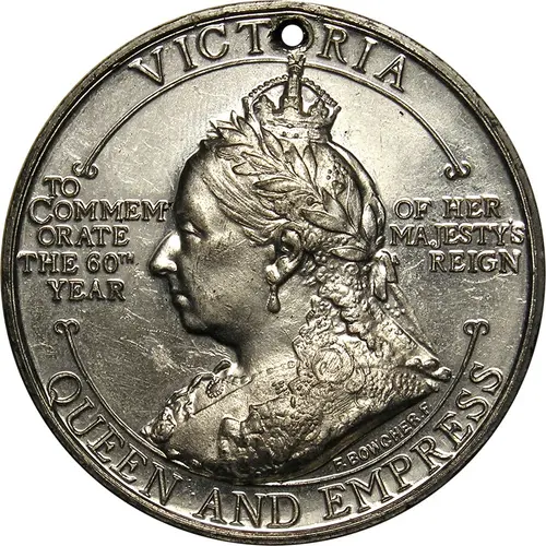 | Obverse lettering | VICTORIA TO COMMEMORATE THE 60th YEAR OF HER MAJESTY`S REIGN QUEEN AND EMPRESS |