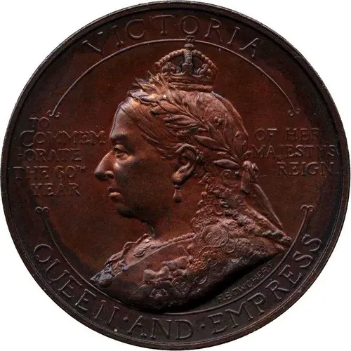 | Opis líce | VICTORIA QUEEN AND EMPRESS TO COMMEMORATE THE 60th YEAR OF HER MAJESTY`S REIGN F. BOWCHER. F |