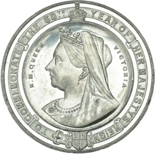 | Obverse lettering | TO COMMEMORATE THE 60TH YEAR OF HER MAJESTY`S REIGN H.M.QUEEN VICTORIA |