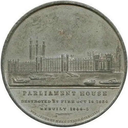 | Averslegende | PARLIAMENT HOUSE DESTROYED BY FIRE OCT 16 1834 REBUILT 1844-5 |