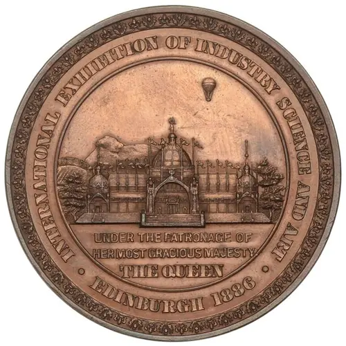 | Obverse lettering | INTERNATIONAL EXHIBITION OF INDUSTRY SCIENCE AND ART UNDER THE PATRONAGE OF HER MOST GRACIOUS MAJESTY THE QUEEN EDINBURGH 1886 |