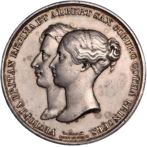 | نوشتههای روی مدال | VICTORIA BRITAN REGINA, ET ALBERT SAX COBURG GOTHA PRINCEPS. HALLIDAY FECIT ET DIREX |