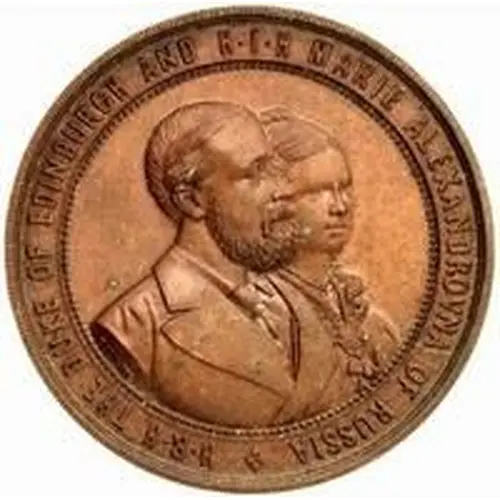 | Reverse lettering | H.R.H THE DUKE OF EDINBURGH BORN AUG.6.1844 MARRIED JAN 23.1874 AT ST PETERSBURG TO H.I.H THE GRAND DUCHESS MARIE ALEXANDROVNA OF RUSSIA |