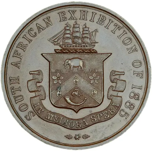 | Obverse lettering | SOUTH AFRICAN EXHIBITION OF 1885 IN MELIORA SPERA |