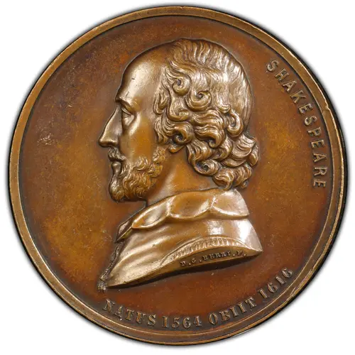 | Obverse lettering | SHAKESPEARE NATUS 1564 OBIT 1616 |