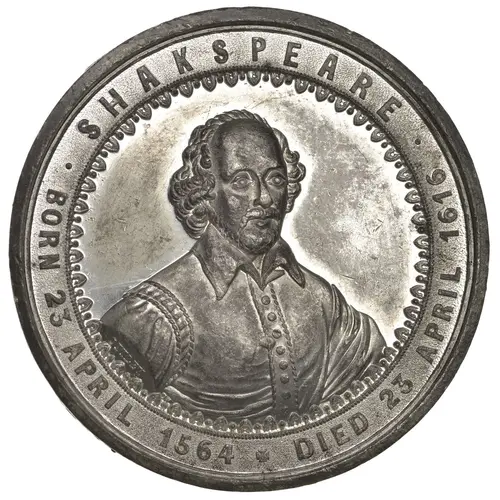 | Legenda rewersu | THE TERCENTENARY OF THE BIRTH OF SHAKESPEARE CELEBRATED 23 APRIL 1864 |