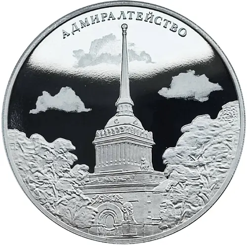 | Description de l’avers | Depicted is the Admiralty building, built in 1823 on the 2nd Admiralty Island on the bank of the Neva River, a significant monument of Russian classicism architecture. In the background are clouds made using laser matting. |